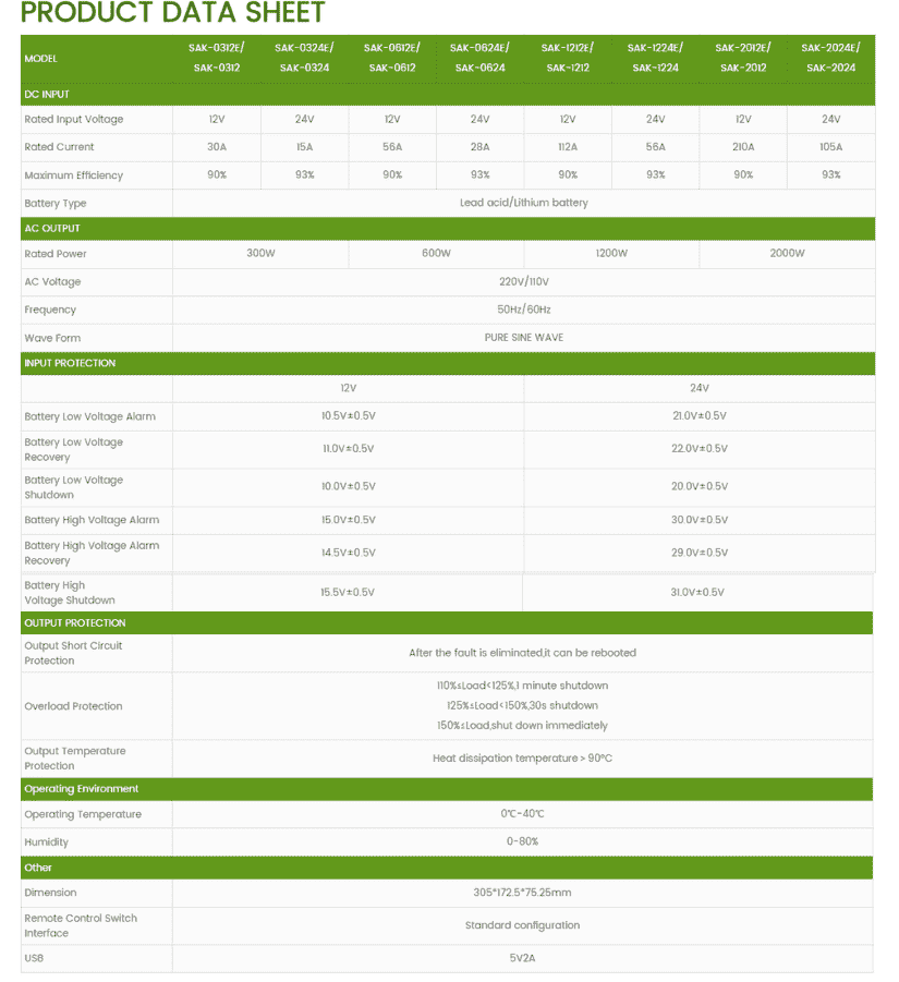 Thông số kỹ thuật Inverter Kích Điện Sin Chuẩn Sumry 1200W – 12V